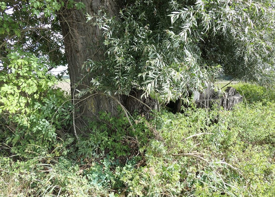 - Begleitarten: eine zweite, stark dezimierte Silberweide steht daneben, Holunder, Brennnesseln