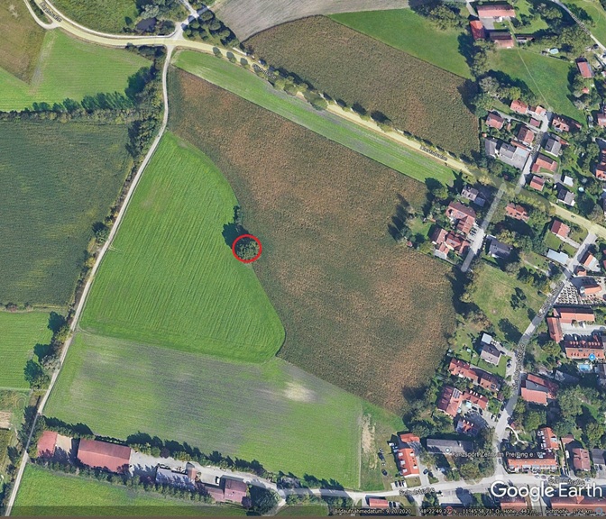 Erst am Ende der 1990er-Jahre wurde das Flurstück südwestlich des Baums beackert. Ab 2009 wurde die ganze Fläche westlich der alten Grenzlinie als eine Ackerfläche zusammen bewirtschaftet. Wie die Luftbilder von Google Earth zeigen, wird seit der Ernte 2023 die gesamte Fläche um den Baum einheitlich über den alten Grenzrain hinweg zusammen als ein Schlag genutzt. An die alte Grenzlinie erinnert nur noch die Eiche, die jetzt mitten im Feld steht.