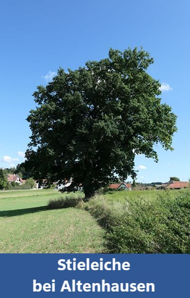 Eine weitere starke Stieleiche steht als Flurbaum südlich des Orts.