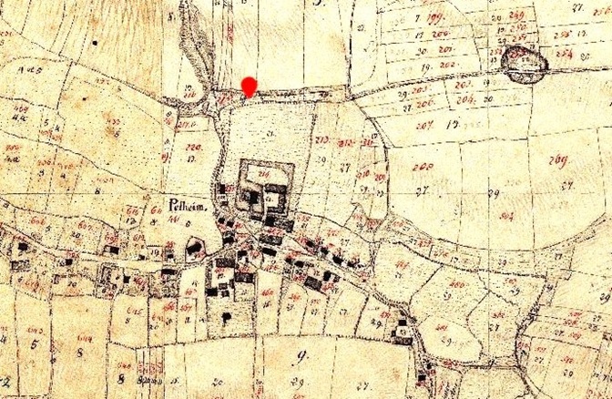 Der Baum keimte vermutlich um 1850 im Bereich einer wegbegleitenden Trift, die oberhalb der moorigen Niederung um Pellheim in West-Ost-Richtung verlief (Abb. 1 und 2).