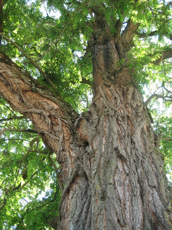 Die Gewöhnliche Robinie ist ein Neophyt, sie kam um 1600 von Nordamerika nach Europa. Inzwischen ist sie bei uns längst eingebürgert und wird wegen ihrer erfolgreichen Vermehrungsstrategie als invasiv angesehen. Wie Lawsons Scheinzypresse wurde auch diese früher als exotisch angesehene Art gern in Parkanlagen oder neben Denkmalen gepflanzt.