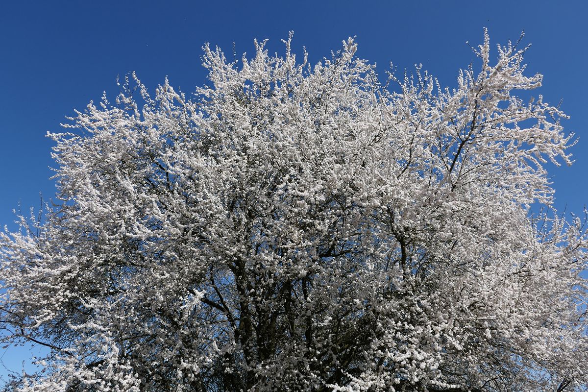Mitte März 2024 stand der Baum in voller Blüte.
