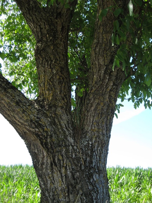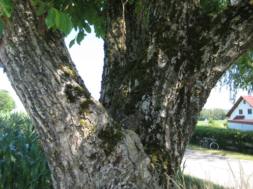 - steiler Zwiesel in 2,2 m Höhe, Ausbildung von Ohren, Rindengrat bis zum Boden