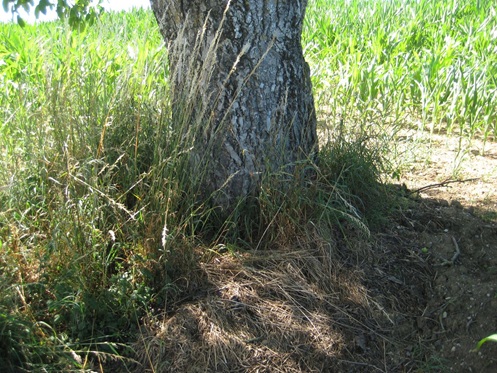 - Abstände: eine versiegelte Fläche ist etwa 4 m entfernt, eine regelmäßig bearbeitete Fläche reicht bis nahe an den Stamm