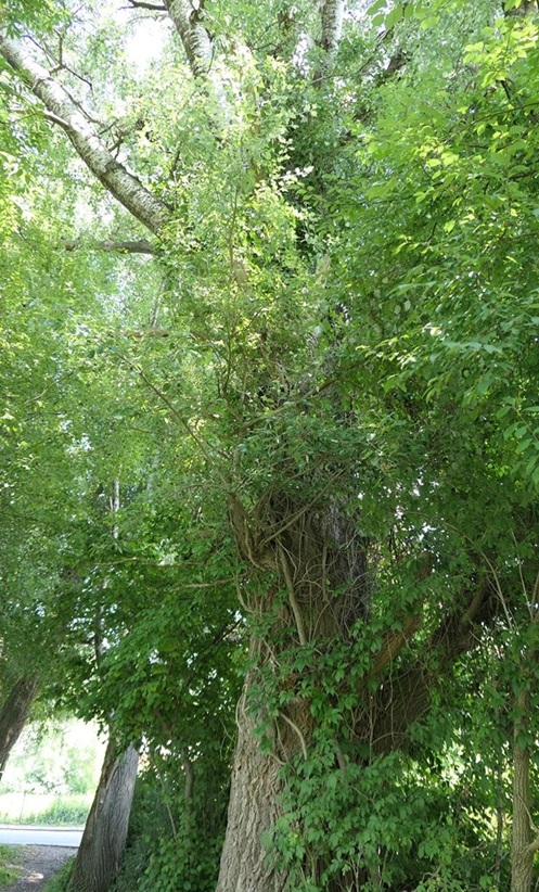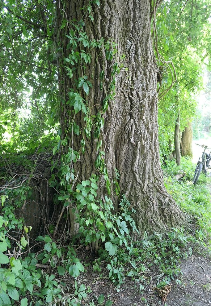 Abgesehen von der hier im Bestand ohnehin nur sehr ungenauen Höhen- und Kronenbreitenschätzung entsprechen alle anderen Daten denen der Silberpappel (1).