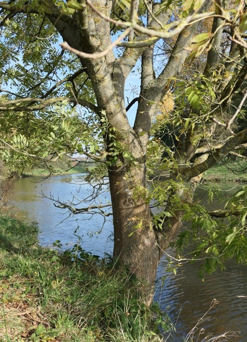 Die ganze Zeit mit den Füßen im Wasser - das kann doch nicht gesund sein? Der Gemeinen Esche am Niddaufer scheint es damit aber gut zu gehen.