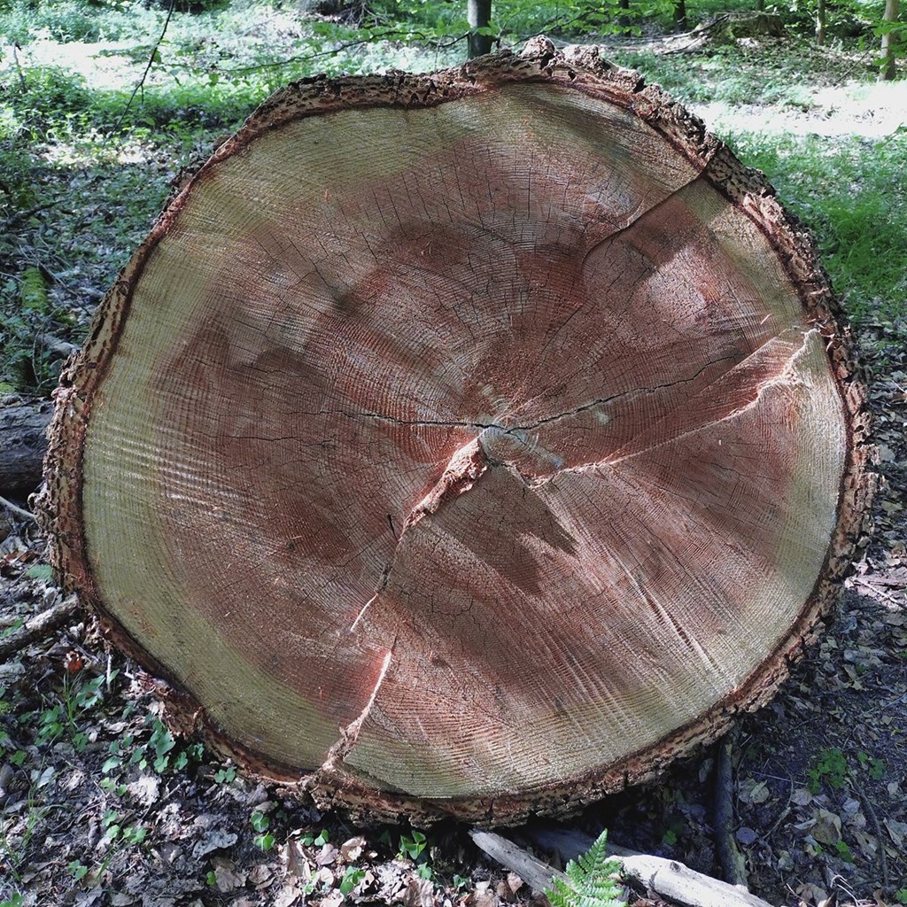 Im Frühjahr 2025 wurde die stärkste Douglasie im Raum Freising gefällt. Wie alt ist sie geworden? Die Jahresringe zeigen ein Alter von 135 Jahren an.