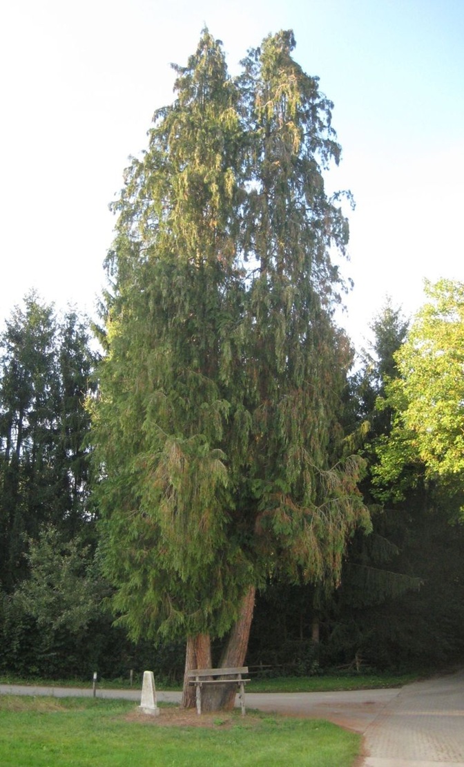 Die Heimat von Lawsons Scheinzypresse ist die Westküste Nordamerikas. Bei uns ist die Art ein Neophyt, gilt aber inzwischen als eingebürgert. Diese damals noch exotische Art wurde in unserer Gegend früher häufig neben Gedenksteinen oder Feldkreuzen gepflanzt.