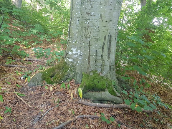 Nicht weit davon entfernt steht ein möglicher Elternbaum mit 319 cm Stammumfang. Er ist so gewachsen, wie es sich der Forstmann vermutlich eher wünscht. Nach diesem Baum ist der Schlangenweg nicht benannt.