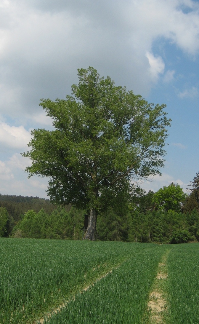 Eine der größten und bekanntesten Wallfahrten in der Hallertau führte am Sonntag und Montag vor Christi Himmelfahrt von über zehn Orten nach St. Alban. Der Weg von Nandlstadt ging damals direkt an dieser alten Schwarzpappel vorbei, er war dort als "Gangsteig" (= Fußpfad) bekannt. Inzwischen sind die Äcker größer geworden und der Weg wurde an die Feld-Wald-Grenze verlegt. So steht der prächtige Baum heute mitten im Acker.