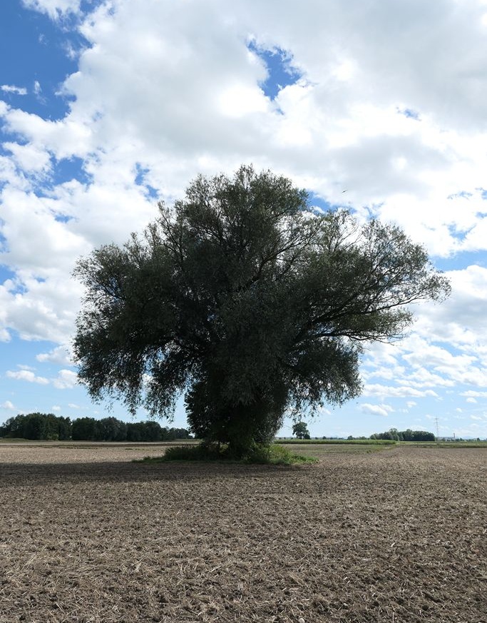 Bis zum Bau der nahegelegenen Autobahn durch das Erdinger Moos stand die Weide an einem Entwässerungsgraben. Heute steht sie mitten in einem Acker.