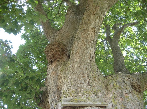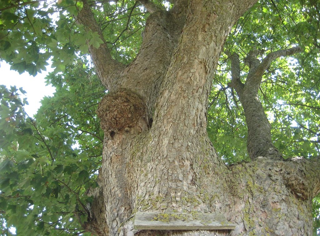 - Schäden: Äste im unteren Stammbereich entfernt, 2025 ist der Zwiesel ausgebrochen
