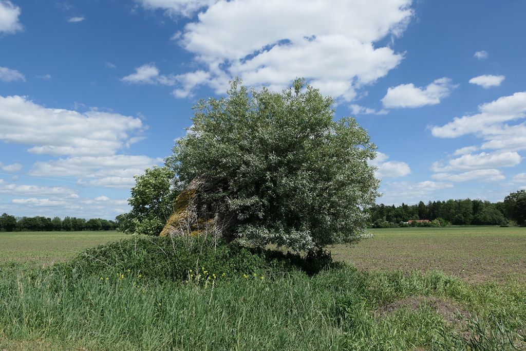 Der Stamm versteckt sich hinter einem Laubvorhang. Ich bin mehrmals an dem Baum vorbei gefahren, ohne zu erkennen, welch mächtigen Stamm diese gar nicht so hohe Weide hat.
