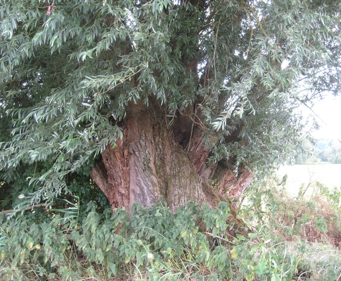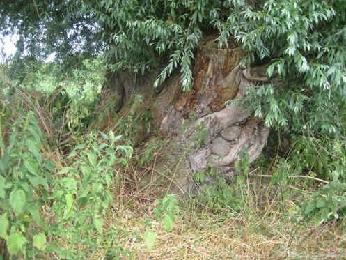 Es ist immer gut, genau hinzusehen. Ich habe mir noch überlegt, ob es sich wohl lohnt, zu diesem aus der Entfernung schmächtigen Bäumchen zu radeln und zu ihm über die Wiese zu gehen. Es stellte sich heraus, dass dies die Weide mit einem der mächtigsten Stämme dieser Website ist.