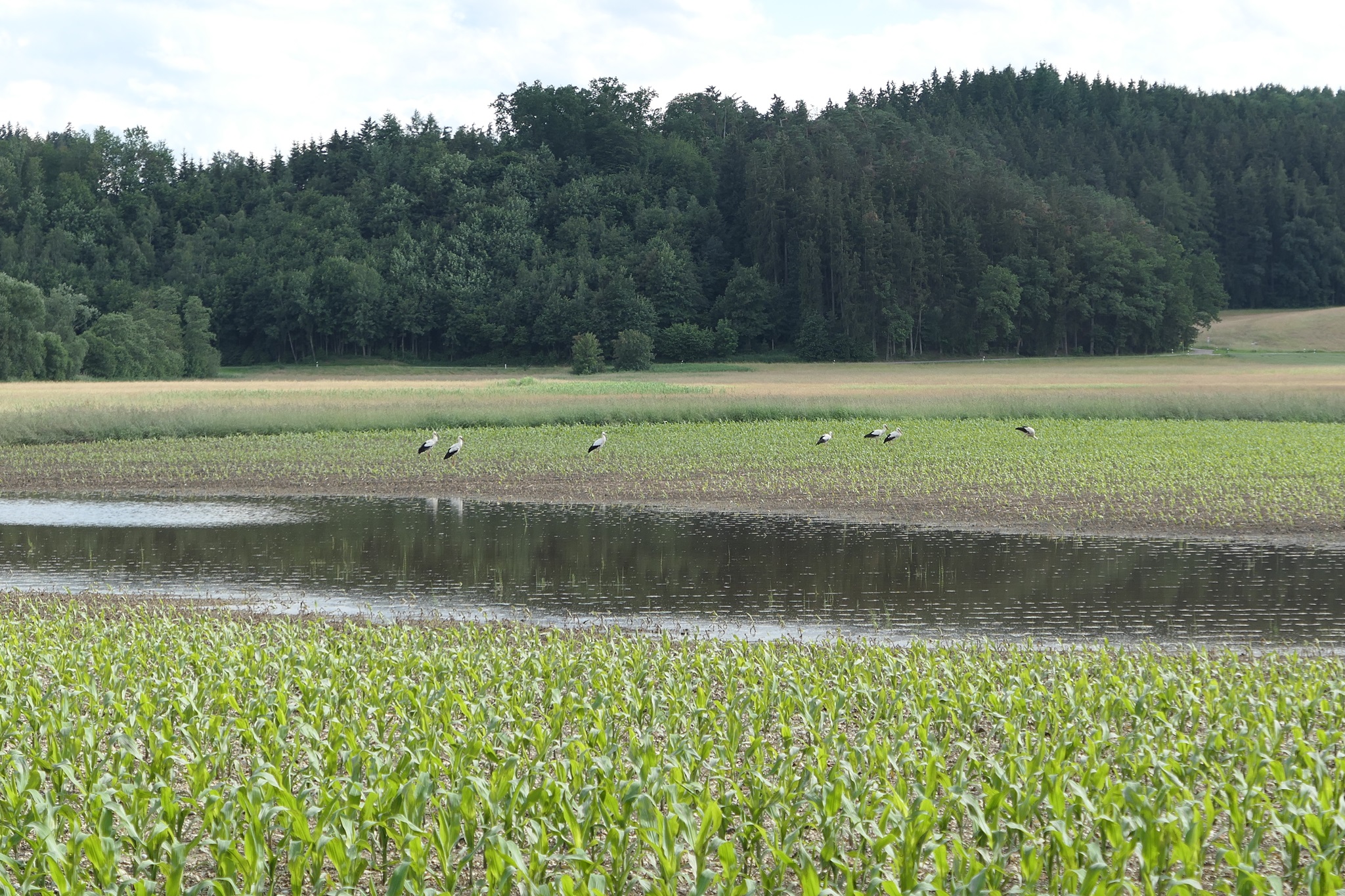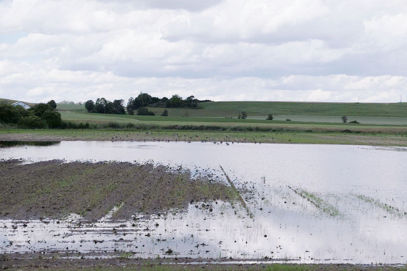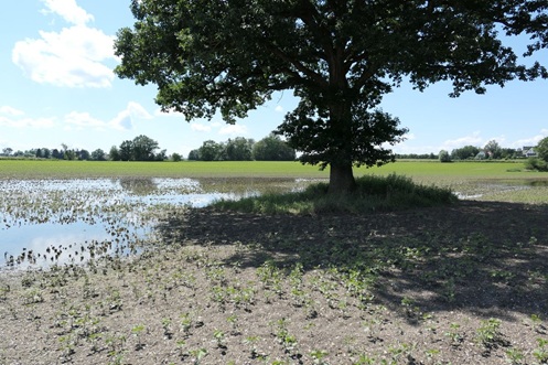 Die hier zu sehenden überfluteten Äcker sind Flächen mit häufigem Hochwasser ("HQhäufig", früher "HQ10") (139). Sie liegen meist wie hier in Flussauen und sollten aus Gründen des Boden- und Gewässerschutzes besser als Grünland genutzt werden. Die oft wirtschaftlich rentablere Ackernutzung hat dazu geführt, dass auch in diesen Lagen über viele Jahre Grünland in Acker umgewandelt wurde. Erst seit etwa 2011 haben insbesondere stringentere Regelungen der Agrarförderung und des Umweltrechts dazu beigetragen, dass der Grünlandumbruch gebremst wurde.