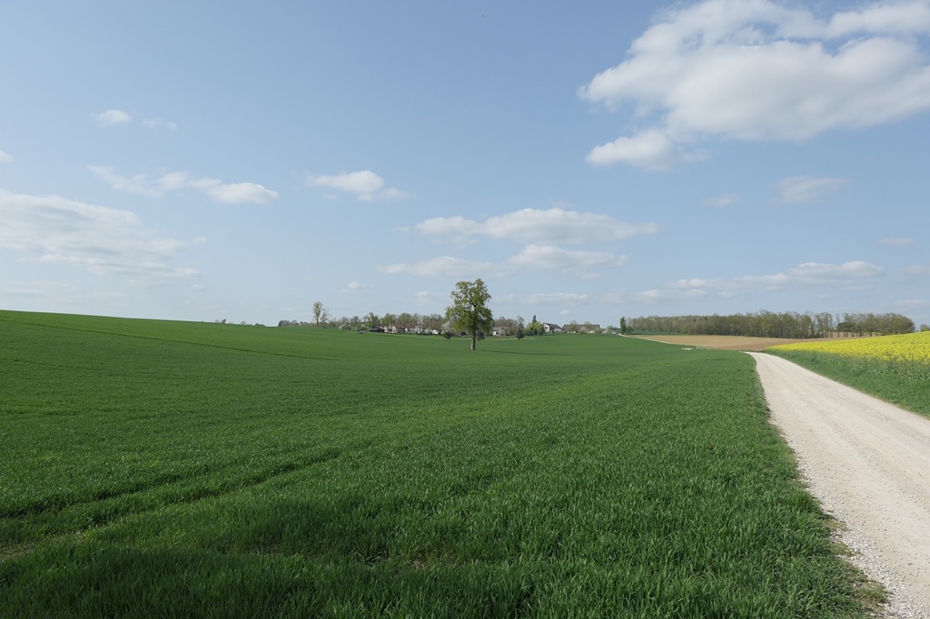 Ein klassischer Flurbaum. Auch hier stellt sich wieder einmal die Frage: Warum steht mitten im Acker ein Baum? Wie meistens in solchen Fällen: auch hier verlief früher eine Grenze, auf der ein Baum kaum störte.