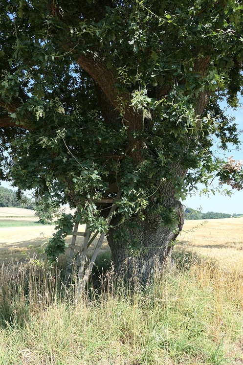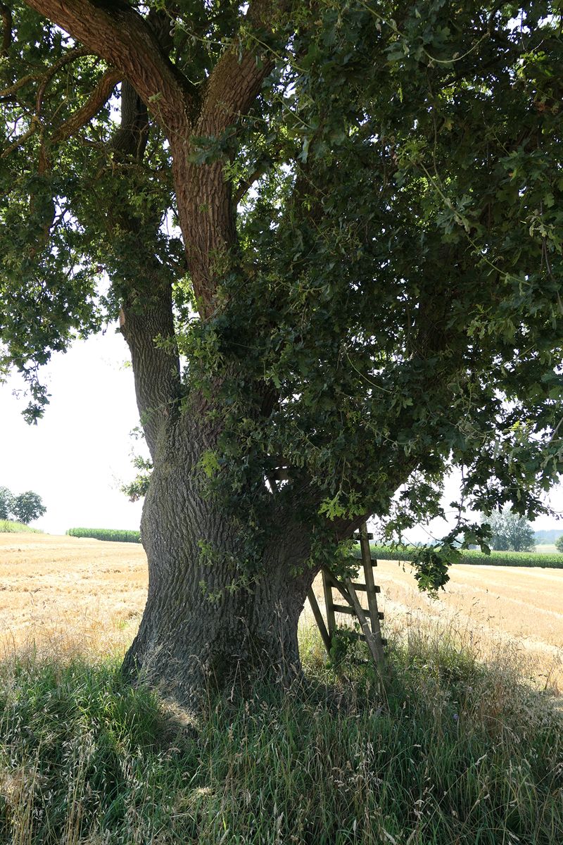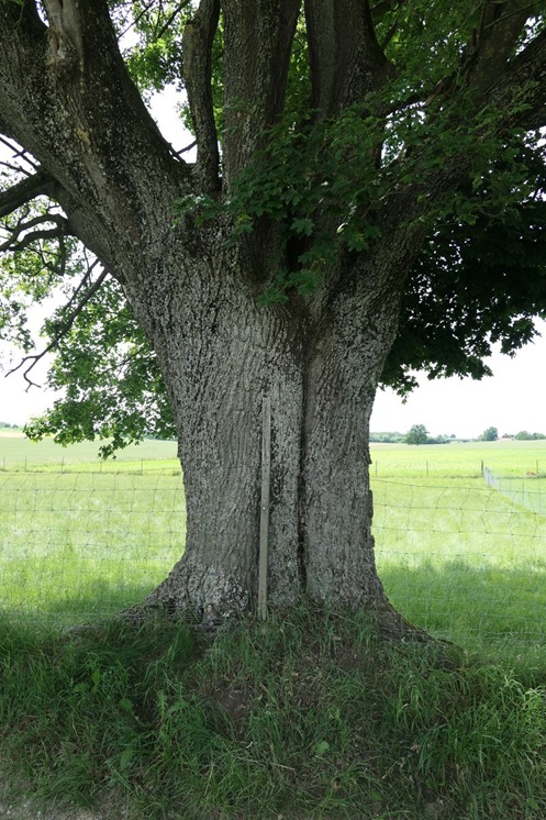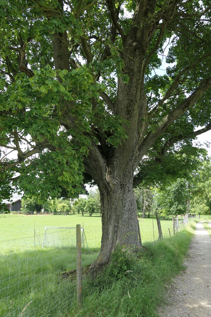 Der Ahorn steht in einer Baumreihe am Rand einer Weide, die abgezäunt ist und als Damwildgehege dient. Da der Zaun die Messung des Stammumfangs etwas erschwert, lies es sich der freundliche Besitzer nicht nehmen, mir dabei zu helfen. Der mächtige Spitzahorn steht derzeit auf Platz zwei der bayerischen Champion Trees.