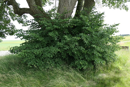 Abb. 1 und 2: ein Strauch der Gemeinen Esche wächst wie aus der Stieleiche heraus (Foto: 08.07.2022)