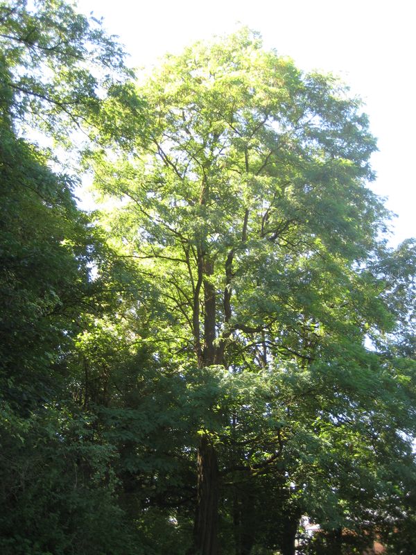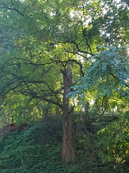 Die Gewöhnliche Robinie ist ein Neophyt, sie kam um 1600 von Nordamerika nach Europa. Inzwischen ist sie bei uns längst eingebürgert und wird wegen ihrer erfolgreichen Vermehrungsstrategie als invasiv angesehen. Wie Lawsons Scheinzypresse wurde auch diese früher als exotisch angesehene Art gern in Parkanlagen oder neben Denkmalen gepflanzt.
