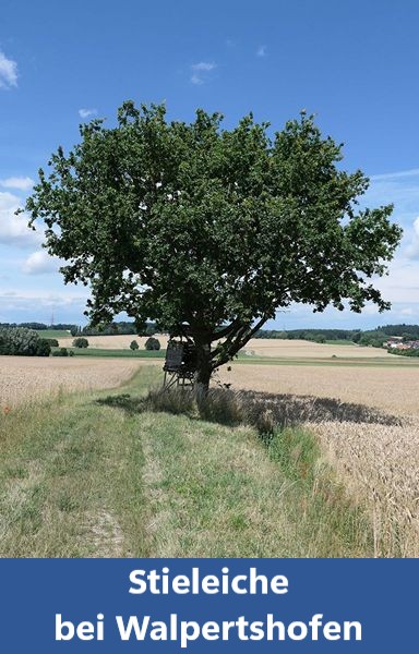 Wie viele andere Flurbäume steht auch diese Eiche mitten in einem Acker. Der Landwirt, der diese Fläche besitzt, gönnt dem Baum einige Meter Abstand zur bewirtschafteten Fläche und damit ausreichend Lebensraum. Ist es derselbe, in dieser Hinsicht großzügige Landwirt, der auch die Fläche mit der nahe gelegenen Stieleiche bei Pellheim bewirtschaftet?