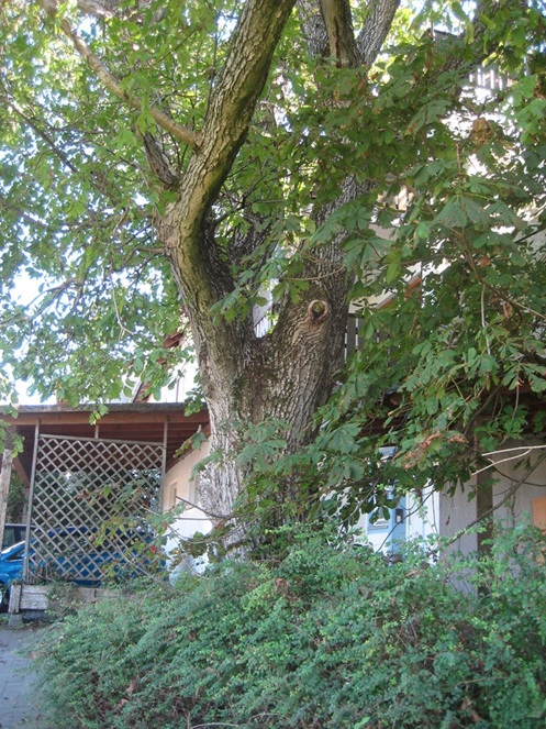- Abstände: eine teilversiegelte Fläche reicht bis nahe an den Stamm