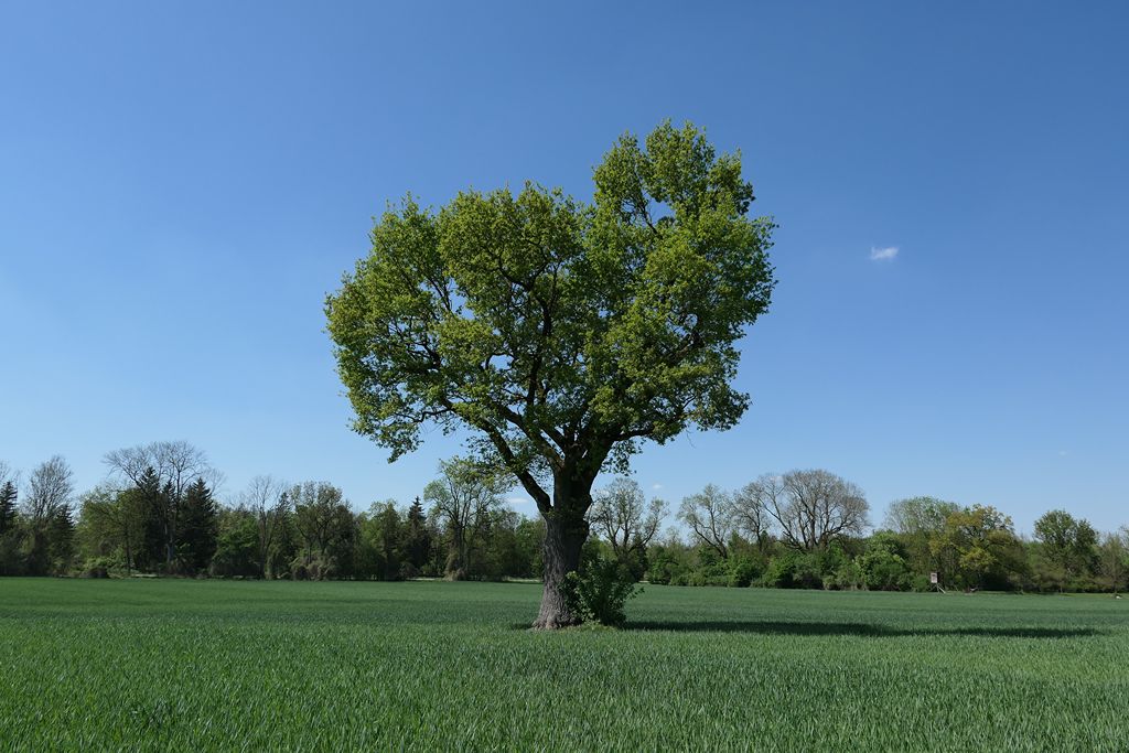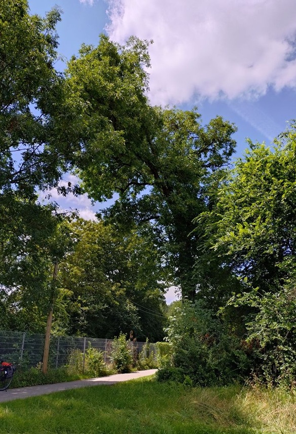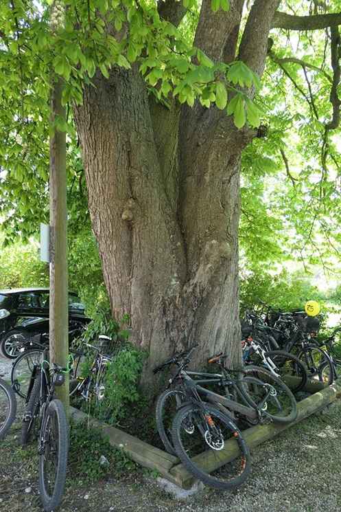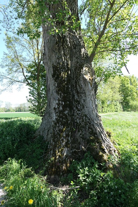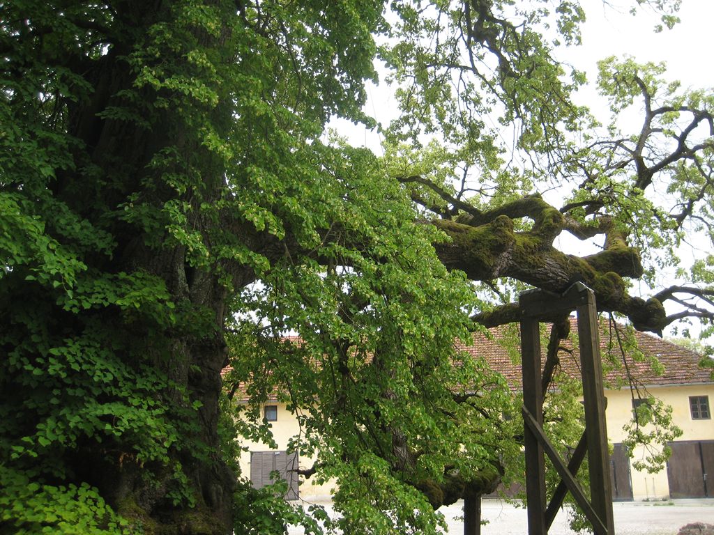 Wie die benachbarten Gewässer (Bach, Teich) zeigen, hat die Winterlinde hier einen guten Wasseranschluss. Ihrer Schwester, der Sommerlinde, würde das weniger gut bekommen.