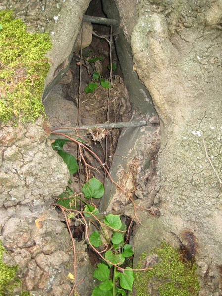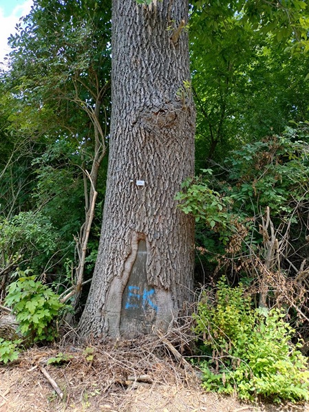 - im unteren Stammbereich (Südseite) Verletzung (Rinde entfernt)