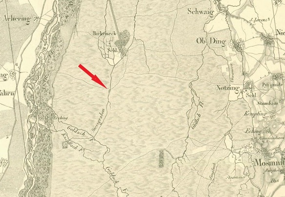 Dieser Kalkofen gilt heute als Urzelle von Goldach. Hallbergmoos ist in der Wenng'schen Karte bereits verzeichnet.