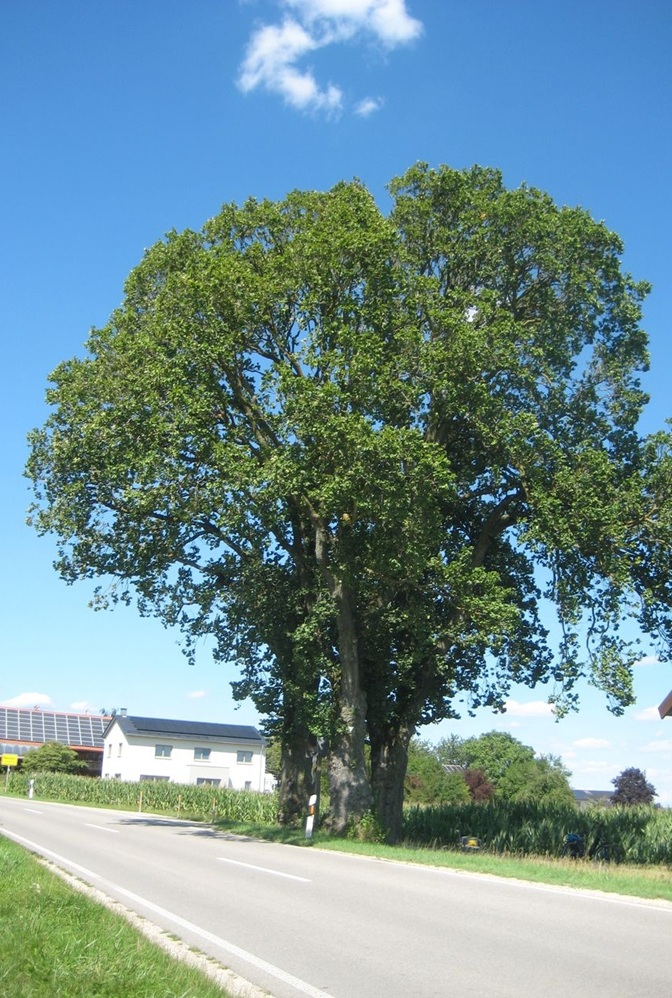 - diese und zwei weitere Bergulmen (BHU = 281 cm und 246 cm) bilden eine Gruppe um ein Feldkreuz
